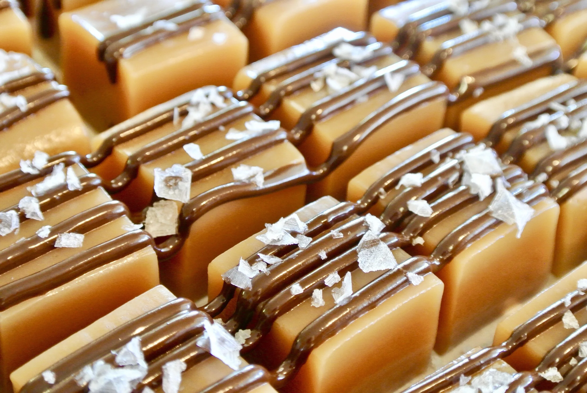 Two dozen individually wrapped caramels drizzled with chocolate and topped with Maldon Sea Salt.