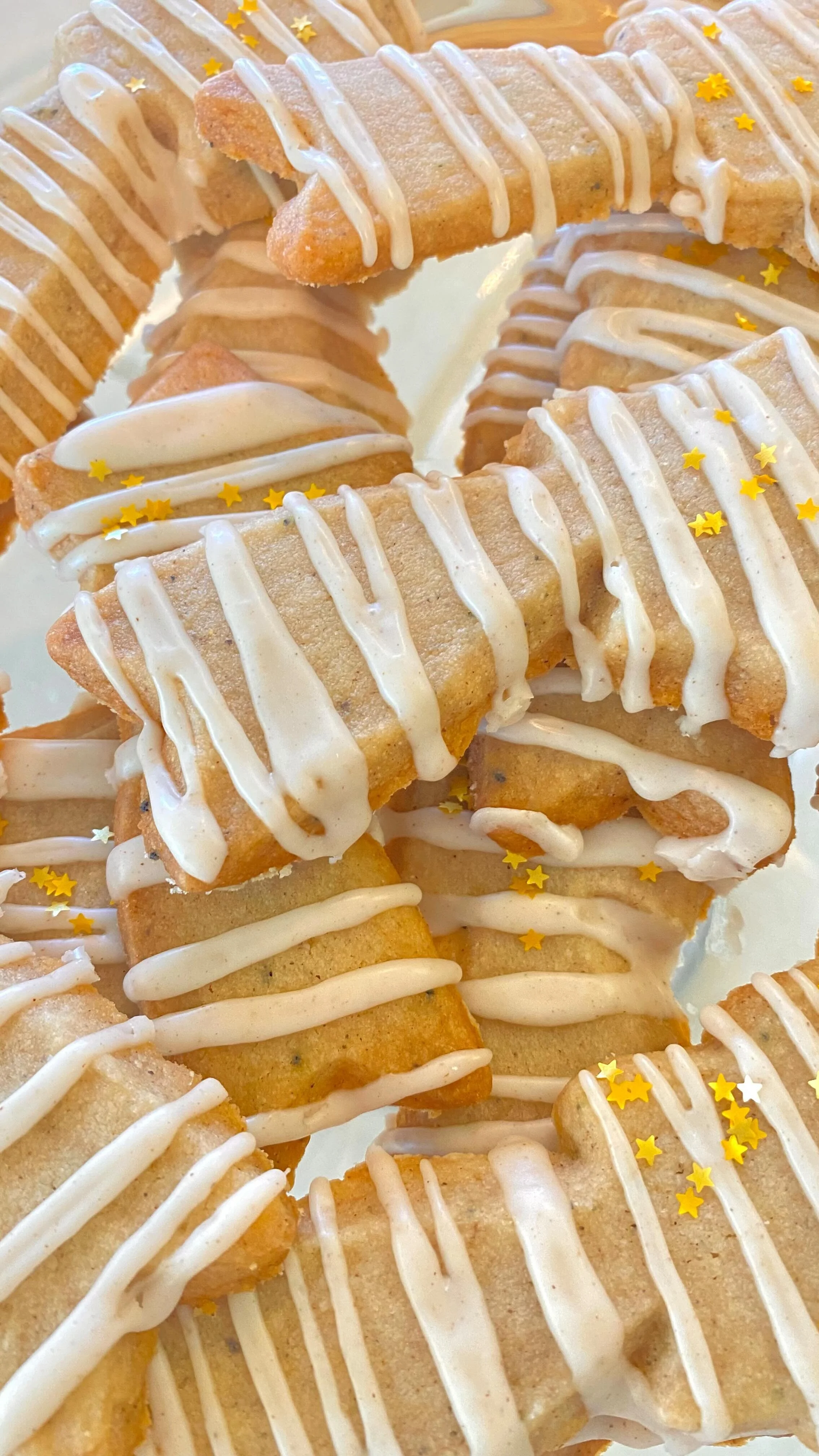 Includes 12 scones flavored and iced with fresh vanilla bean.